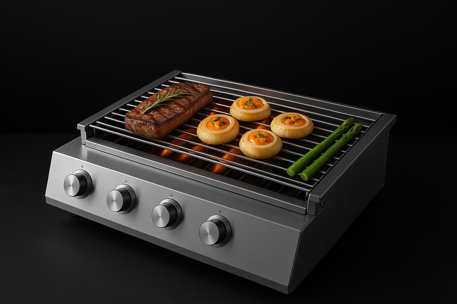 Grâce à ses 4 brûleurs indépendants, vous maîtrisez parfaitement la cuisson de vos viandes, poissons et légumes. Profitez d’une chaleur homogène, de flammes maîtrisées et d’une cuisson saine, sans odeurs persistantes.